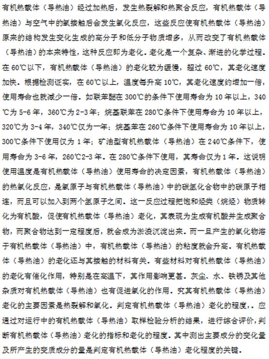 1、系統注油時,有機熱載體為低溫狀態(tài),不存在老化情況;